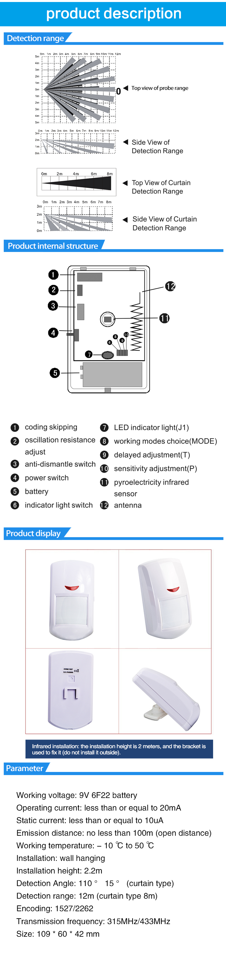 Home Security Alarm System - PIR Motion sensor - Wireless
